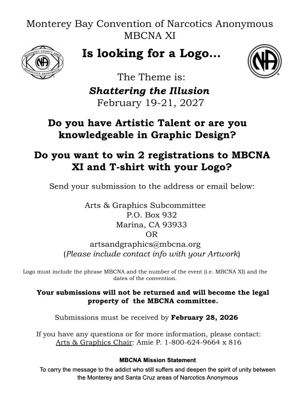 To carry the message to the addict who stills suffers and deepen the spirit of unity between the Monterey and Santa Cruz areas of Narcotics Anonymous